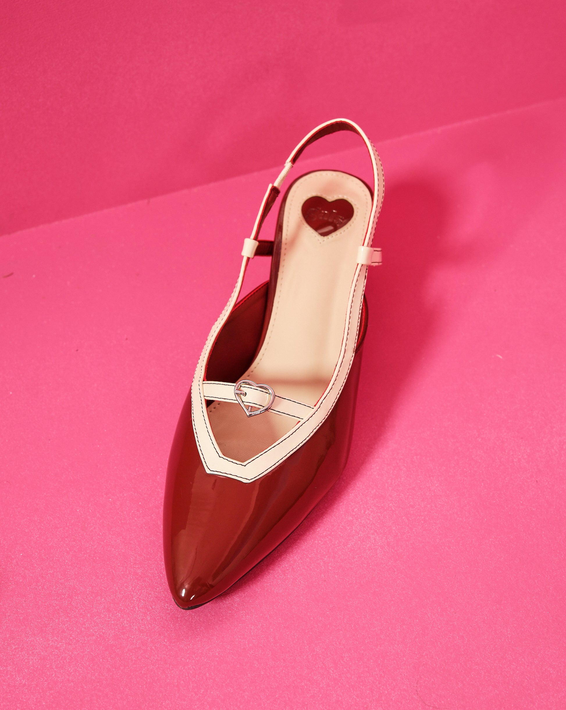 A polished heel with playful details. The Nea Heels are crafted from glossy patent leather, featuring a sleek V-cut vamp and feminine slingback silhouette. The custom heart-shaped buckle engraved with “gals” adds a signature touch, embodying quiet confidence and charm. Perfect for everything from client meetings to evening dates.