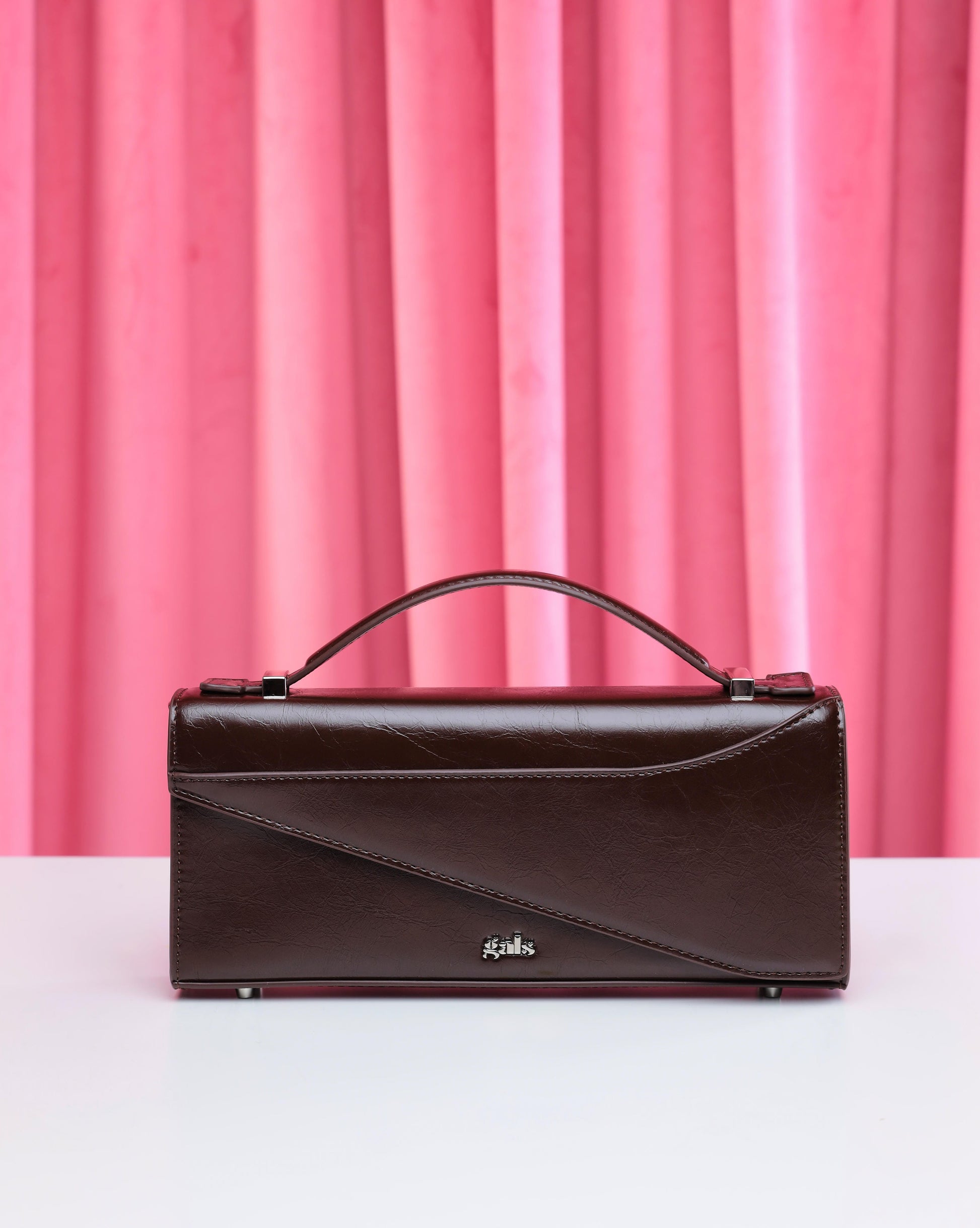Defined by clean architectural lines and a distinctive envelope-inspired flap, Thea delivers a polished presence with effortless sophistication. Finished with a custom metal Gals logo and refined gold-tone or silver-tone hardware, it is made for evenings of distinction and days that call for elevated style.