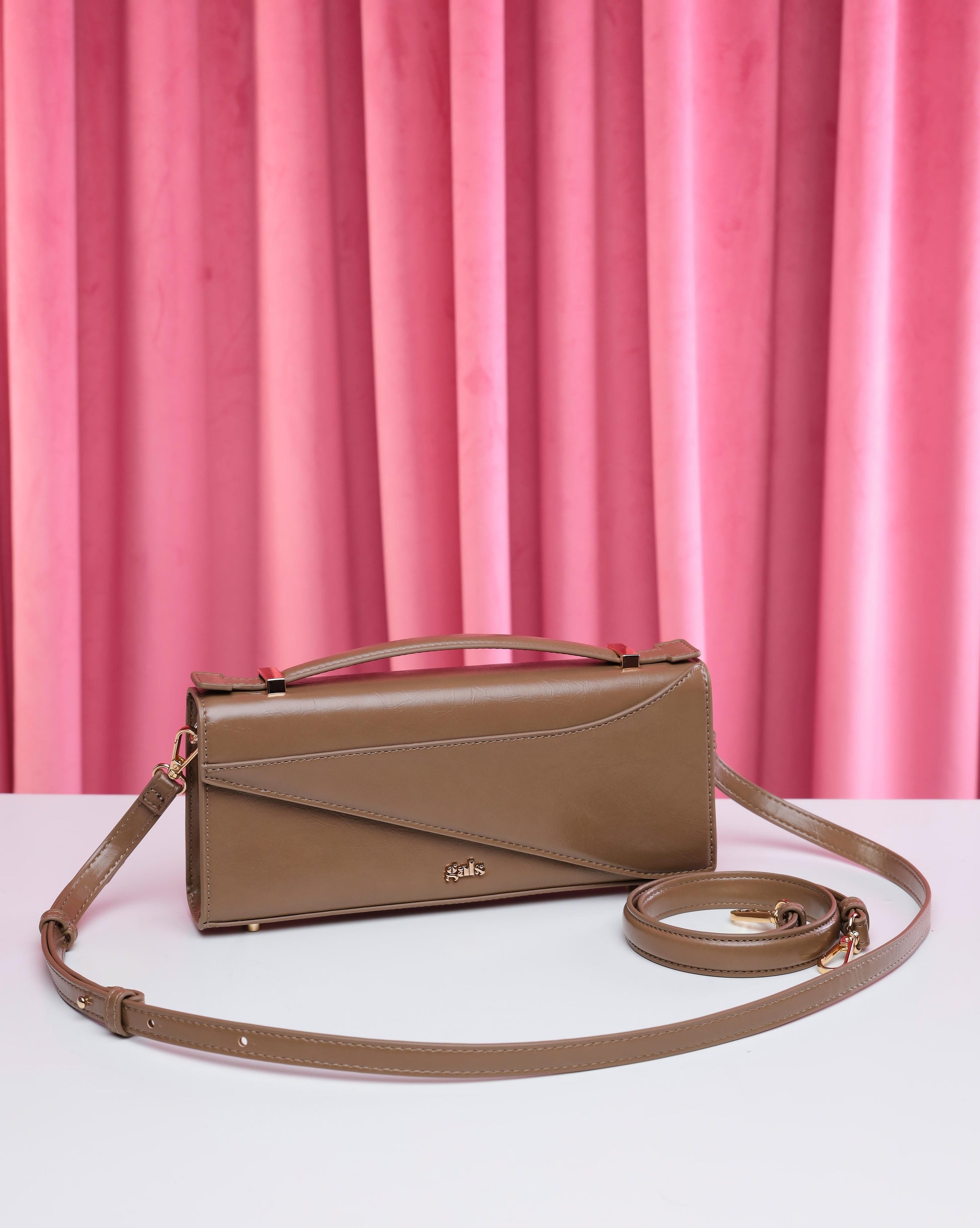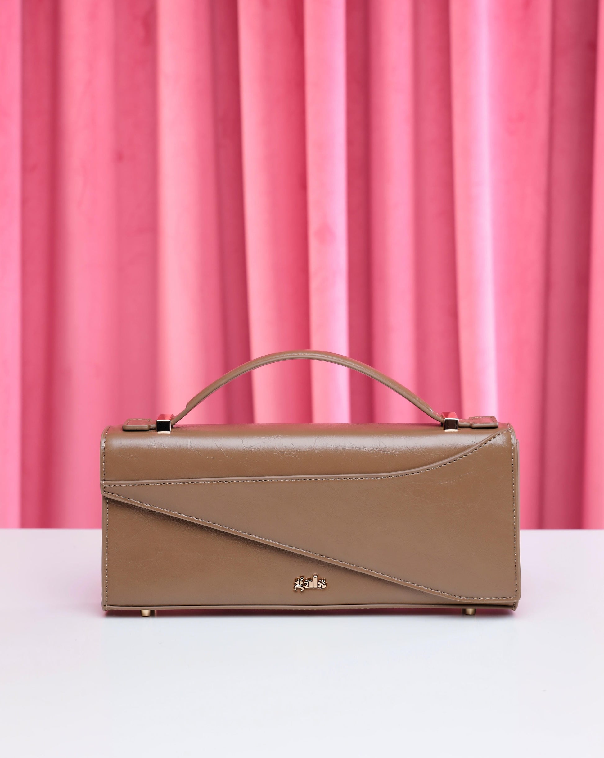 Defined by clean architectural lines and a distinctive envelope-inspired flap, Thea delivers a polished presence with effortless sophistication. Finished with a custom metal Gals logo and refined gold-tone or silver-tone hardware, it is made for evenings of distinction and days that call for elevated style.